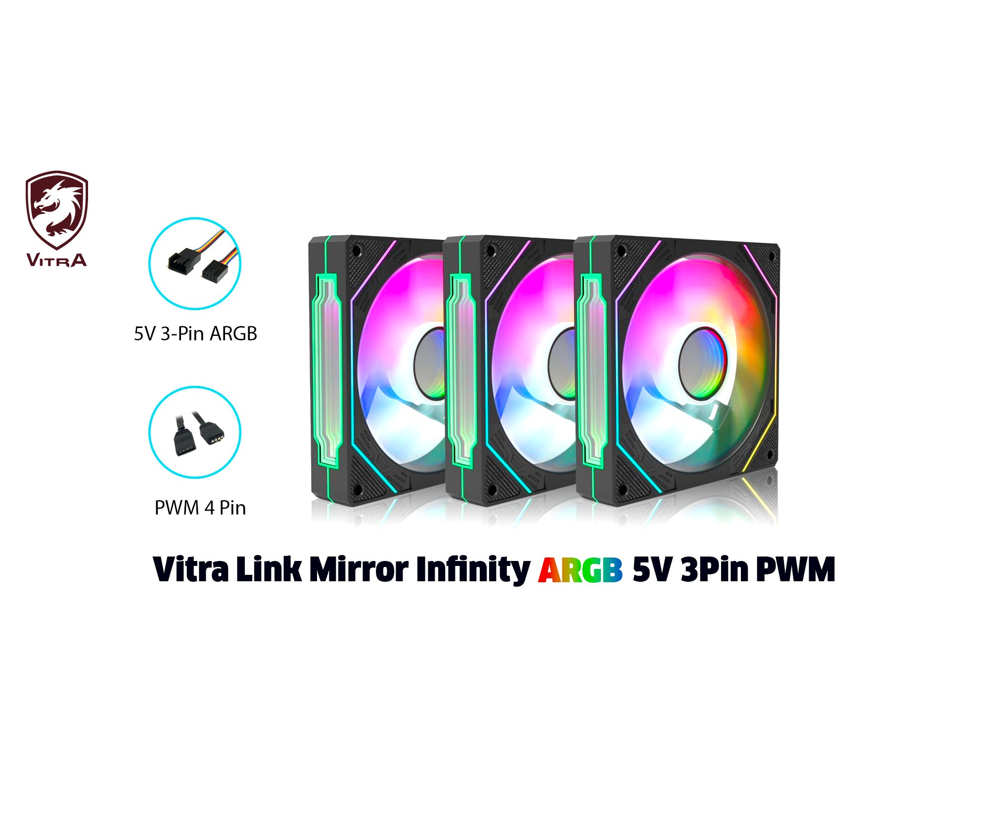 | Tên sản phẩm | FAN GƯƠNG VÔ CỰC VITRA LINK MIRROR INFINITY ARGB 12CM BLACK 5V 3PIN PWM |
