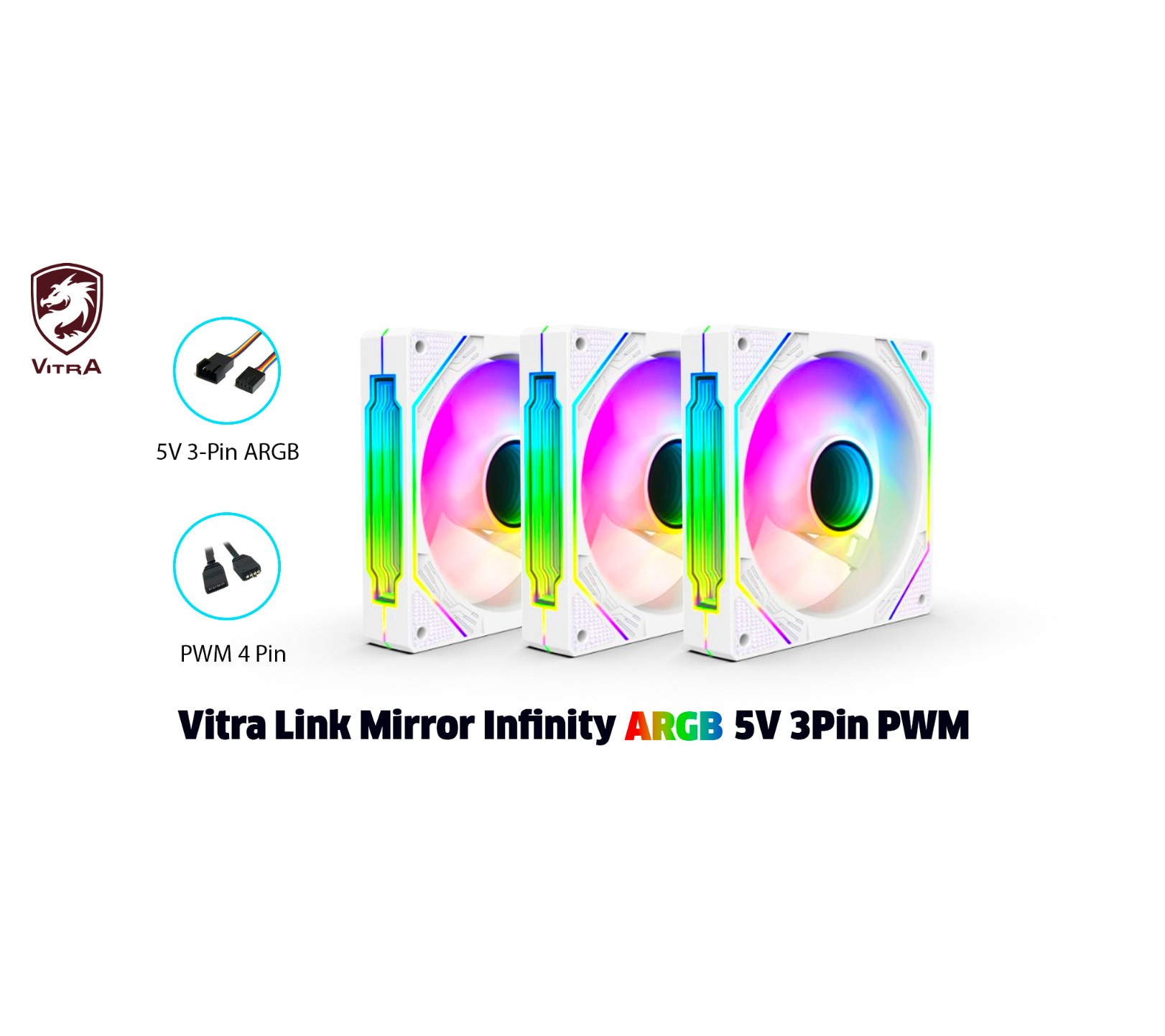 | Tên sản phẩm | Fan Vitra Link Mirror Infinity ARGB 12CM Aura Sync 5V 3PIN PWM White |