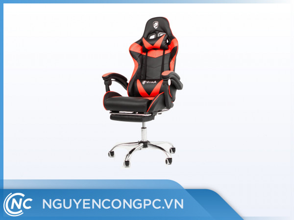 GHẾ GAME CAO CẤP VITRA XRACING H55 ĐỎ ĐEN có Chất liệu: Da PVC cao cấp, đệm mút cao cấp Khung thép chịu lực 1.2mm Kê tay cố định, bọc da cao cấp Chế độ ngả lưng: 150oC Kê chân – Yes Khung thép mạ chrome, bánh xe lớn