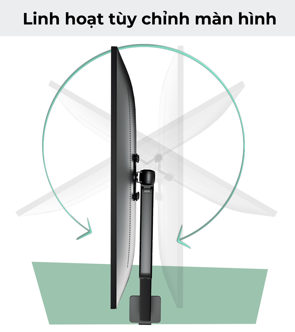 Thông thường các giá đỡ màn hình có phạm vi nghiêng và xoay hạn chế. Việc sử dụng giá đỡ màn hình sẽ tăng đáng kể phạm vi chuyển động của màn hình: Bạn có thể nghiêng màn hình trong phạm vi rộng để màn hình hướng lên trên hoặc hướng xuống dưới để có góc xem tối ưu. Khớp xoay tích hợp cho phép bạn xoay màn hình theo chiều ngang.