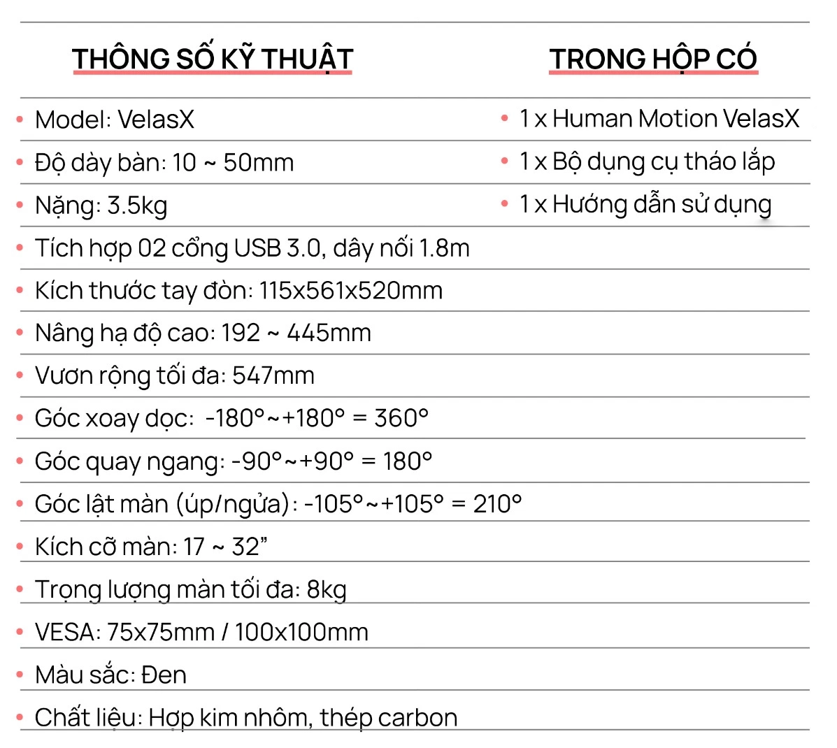 | Dây nối USB 3.0 | 1.8m |