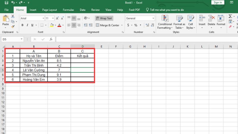 Giả sử bạn có một danh sách điểm thi của học sinh và muốn tự động xếp loại "Đạt" nếu điểm từ 5 trở lên và "Không Đạt" nếu điểm dưới 5.