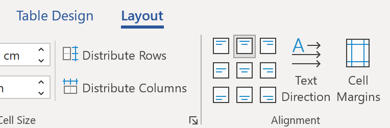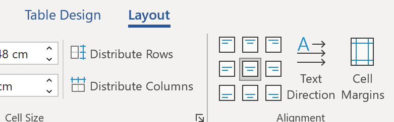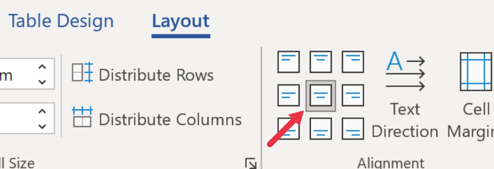 Giải pháp: Bạn cần căn chỉnh lại lề cho văn bản (Alignment) ngay trong thẻ Layout, chọn biểu tượng Align Center để chữ nằm chính giữa ô mới. Ngoài ra, đừng quên chỉnh lại khoảng cách dòng cho thoáng mắt. Chi tiết cách làm bạn có thể xem tại bài: [Hướng dẫn cách giãn dòng trong Word đơn giản].