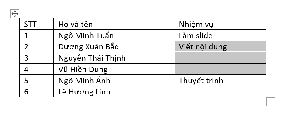 Khi đã có bảng rồi, chúng ta bắt đầu gộp ô!