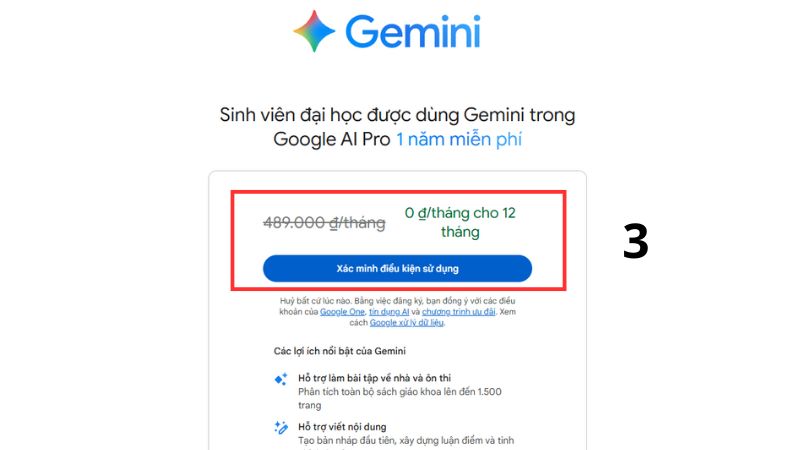 Bước 1: Truy cập trang web chính thức của chương trình: https://gemini.google.com/vn/students/