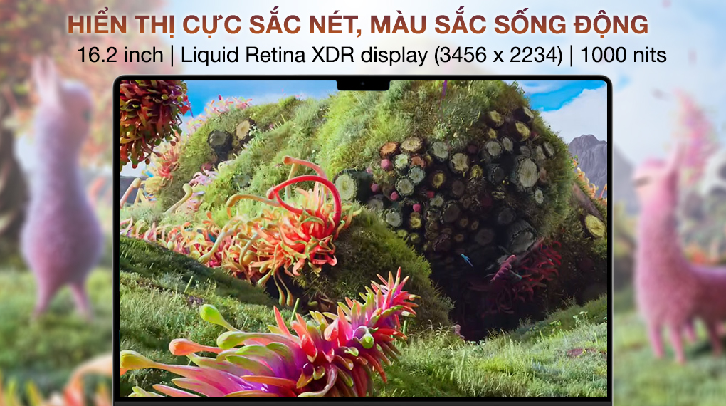 Sở hữu màn hình 16.2 inch mang đến không gian hiển thị rộng rãi, độ phân giải Liquid Retina XDR display (3456 x 2234) mang đến những nội dung vô cùng sắc nét, kết hợp cùng công nghệ Wide color (P3) cho màu sắc vô cùng sống động, chuẩn xác trên từng chi tiết, phù hợp với người dùng làm trong lĩnh vực thiết kế.