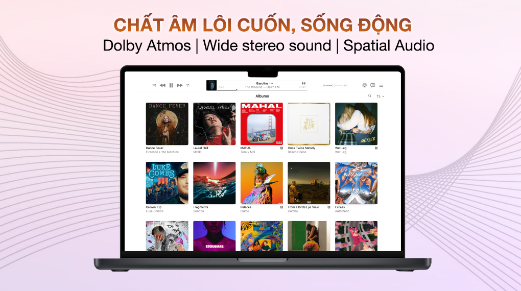 Hệ thống âm đa chiều Dolby Atmos cùng công nghệ Wide stereo sound và Spatial Audio giúp người dùng đắm chìm vào không gian âm thanh sống động, thưởng thức những giai điệu cuốn hút hoặc những thước phim hành động kịch tính.