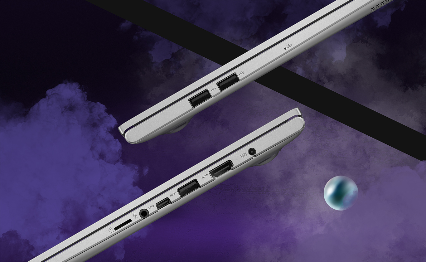 VivoBook 15 được trang bị cổng USB 3.2 thế hệ 1 Type-C™ cho phép kết nối hai chiều, hỗ trợ thiết kế hai mặt giúp kết nối các thiết bị dễ dàng nhất có thể. Ngoài ra còn có cổng USB 3.2 Thế hệ 1 và USB 2.0, cổng ra HDMI và đầu đọc thẻ microSD cho phép bạn kết nối dễ dàng với tất cả các thiết bị ngoại vi hiện đại, màn hình và máy chiếu.