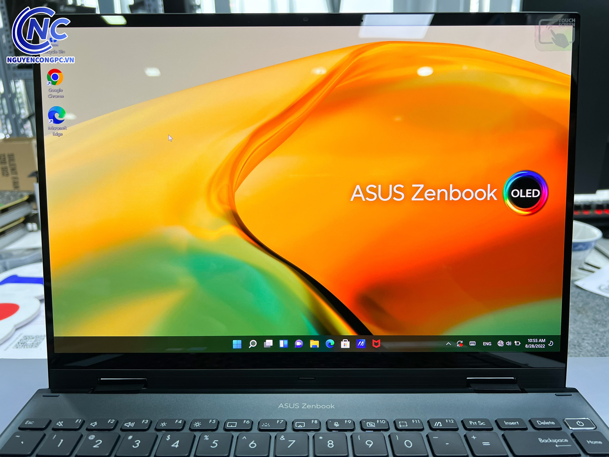 Laptop Asus Zenbook 14 Flip OLED UP5401 với cảm biến vân tay tích hợp tại bàn di chuột và Windows Hello, bạn không cần phải gõ mật khẩu cho mỗi lần đăng nhập – chỉ cần một chạm để mở máy tính