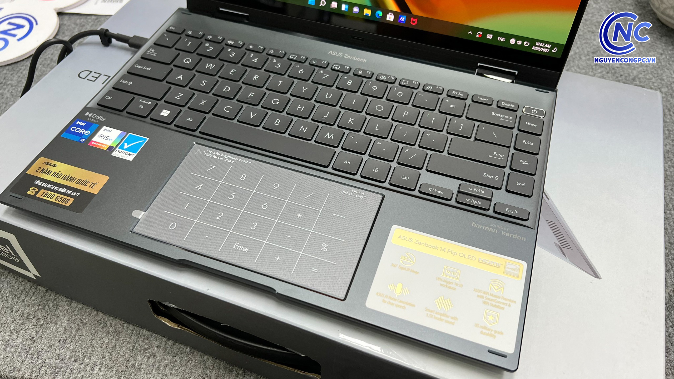Laptop Asus Zenbook 14 Flip OLED trang bị sẵn NumberPad 2.0 tối tân, đây là touchpad được tích hợp bàn phím số có đèn LED. Kể cả khi NumberPad không hoạt động, bàn di chuột vẫn có thể được sử dụng để điều khiển con trỏ nhờ phần mềm thông minh của nó.