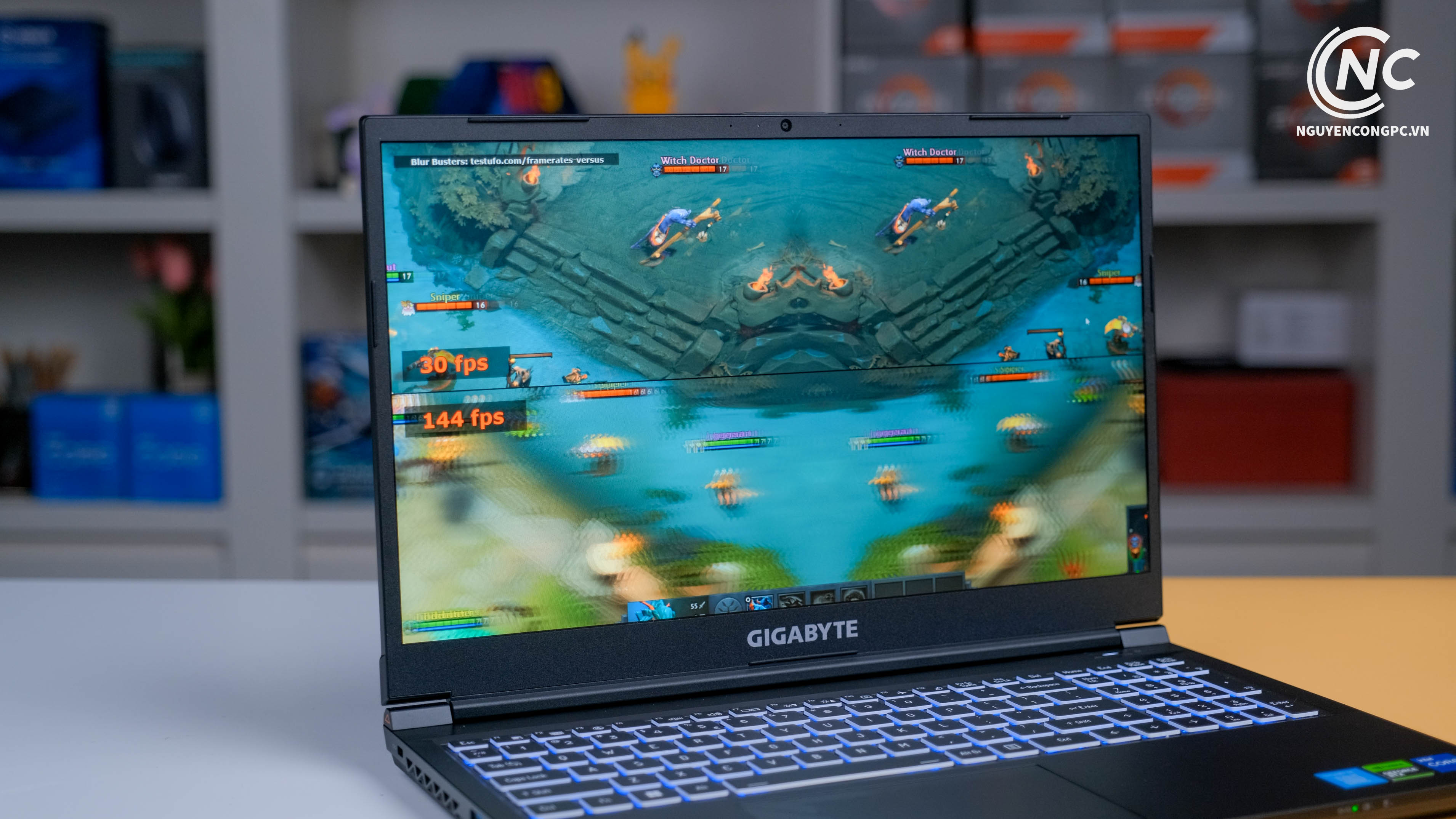 Gigabyte Gaming G5 được trang bị màn hình IPS 144Hz mang đến màu sắc chơi game chân thực. Tốc độ làm mới cao 144Hz giúp loại bỏ hiện tượng chuyển động nhòe và để lại trải nghiệm hình ảnh hoàn hảo mượt mà. Tạo ra một cái nhìn rõ ràng về kẻ thù và là chìa khóa để dẫn chiến thắng.