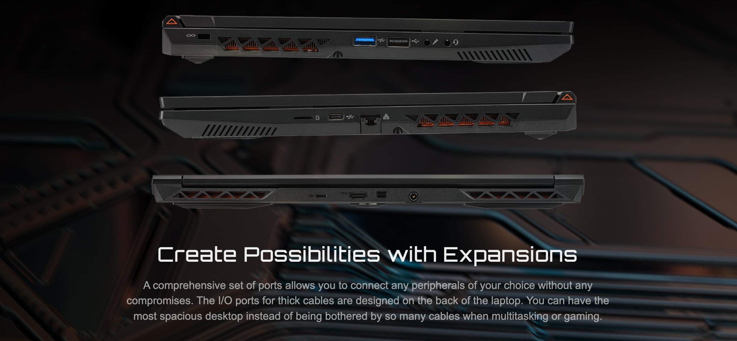 Laptop Gigabyte G5 MF5-H2VN353SH cung cấp đầy đủ cổng kết nối, bao gồm USB Type-C, HDMI, Ethernet, và Mini DisplayPort. Điều này giúp bạn dễ dàng kết nối với các thiết bị khác nhau và mạng, đồng thời hỗ trợ khả năng kết nối không dây nhanh chóng.