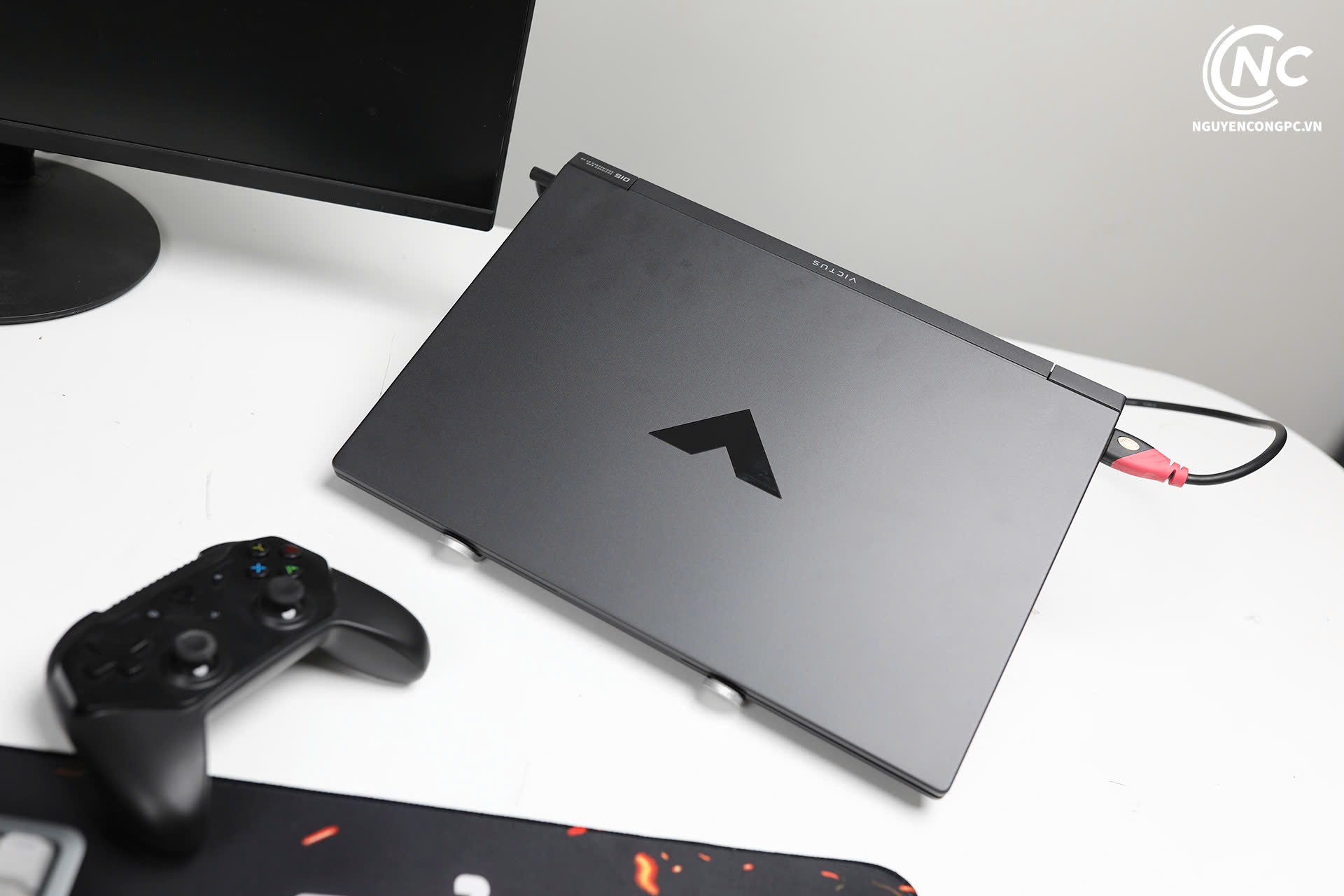 Victus 15 2023 mang ngôn ngữ thiết kế hoàn toàn mới, với biểu tượng chữ “V” bằng kim loại, tạo cảm giác thanh lịch nhưng cũng rất mạnh mẽ. Sự kết hợp giữa hai phong cách hiện đại và sang trọng, pha chút vẻ hầm hố, tạo nên sức hút từ cái nhìn đầu tiên. Bản lề của máy nổi bật với dòng chữ Victus được chạm khắc tỉ mỉ. Tuy nhiên, thiết kế tản nhiệt của HP Victus 15 2023 vẫn giữ được những đặc trưng của các phiên bản trước. Khe tản nhiệt rộng không chỉ là điểm nhấn thẩm mỹ mà còn giúp tăng cường khả năng tản nhiệt cho laptop.