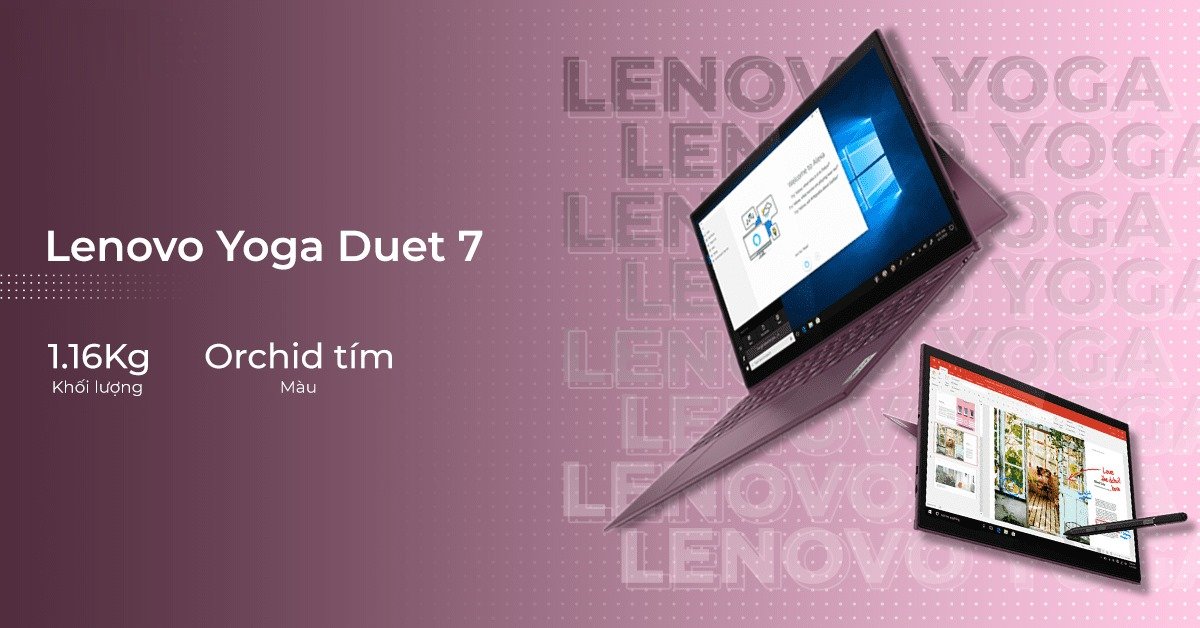 Lenovo Yoga Duet 7 có thiết kế mỏng, nhẹ đẹp mắt với tông màu chủ đạo của máy là màu tím Orchid không chỉ mang phong cách sang trọng mà còn giúp bạn có nhiều cảm hứng sáng tạo hơn với tông màu đặc biệt này.