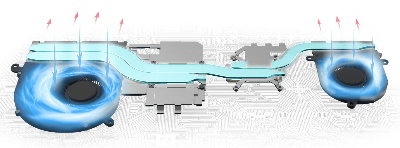 Công nghệ tản nhiệt Cooler Boost 3 độc quyền của MSI với 2 quạt riêng biệt và 3 ống dẫn nhiệt, nổi bật giữa các đối thủ cùng phân khúc, giúp laptop của bạn luôn mát mẻ ngay cả khi đang chạy các tác vụ nặng.