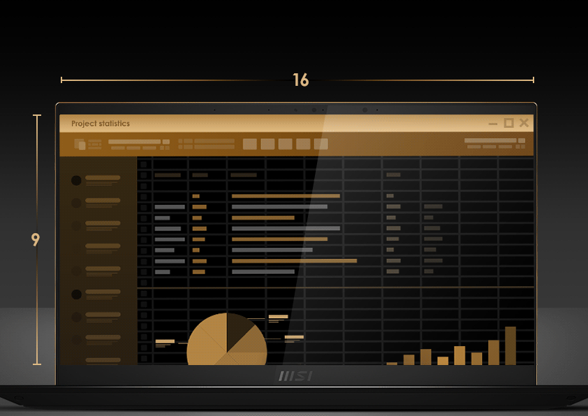 Summit E16 Flip được thiết kế kĩ lưỡng tuân theo Tỉ lệ vàng 1.618:1, và thành quả chính là màn hình tỉ lệ 16:10. Màn hình 16-inch QHD+ tỉ lệ 16:10 giúp mang lại không gian hiển thị thông tin rộng hơn trên một thân máy thiết kế vẫn gọn gàng và tinh xảo.
