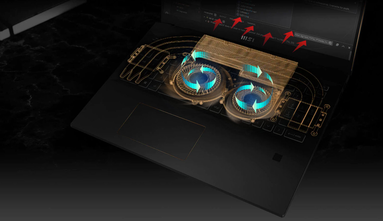 Công nghệ Cooler Boost độc quyền của MSI đảm bảo khả năng tản nhiệt tối ưu nhất. Thiết kế Dynamic Cooler Boost mới đưa hai quạt ra vị trí chính giữa để tối ưu hóa khả năng dẫn nhiệt từ CPU & GPU. Để đảm ứng yêu cầu của các doanh nhân, Dynamic Cooler Boost giữ độ ồn ở mức dưới 35dB, phát huy tối đa hiệu năng xử lí trong khi hoạt động cực kì im lặng.