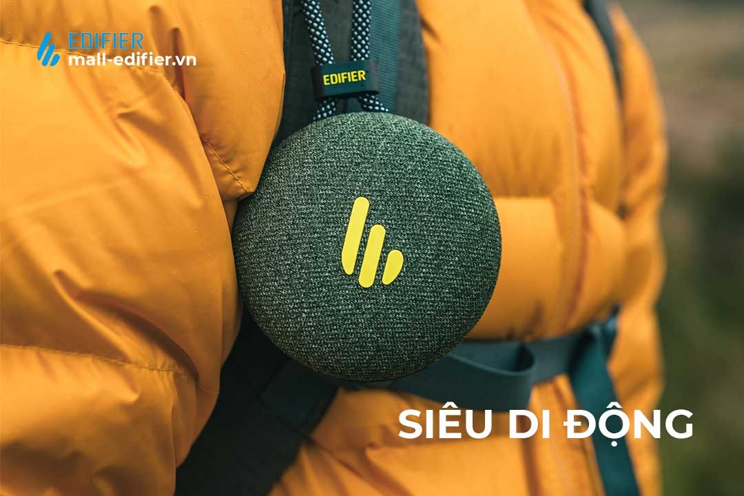Thiết kế bo tròn (sandwich type), loa bluetooth Edifier MP100 Plus chỉ có trọng lượng tương đương với chiếc điện thoại di động. Kích thước loa và các đường cong thiết kế giúp dễ dàng và thoải mái khi mang theo. Loa gọn trong lòng bàn tay, cầm nắm chỉ với 1 tay. Đặc biệt có dây móc, có thể móc vào balo hoặc cổ tay dễ dàng mang theo những chuyến trải nghiệm ngoài trời.