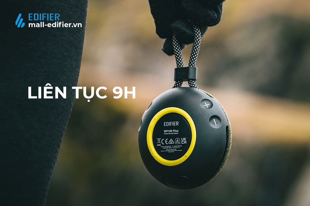 Loa di động MP100 Plus tích hợp pin lithium-ion polime công nghệ mới, cho phép nghe nhạc liên tục 9 tiếng.