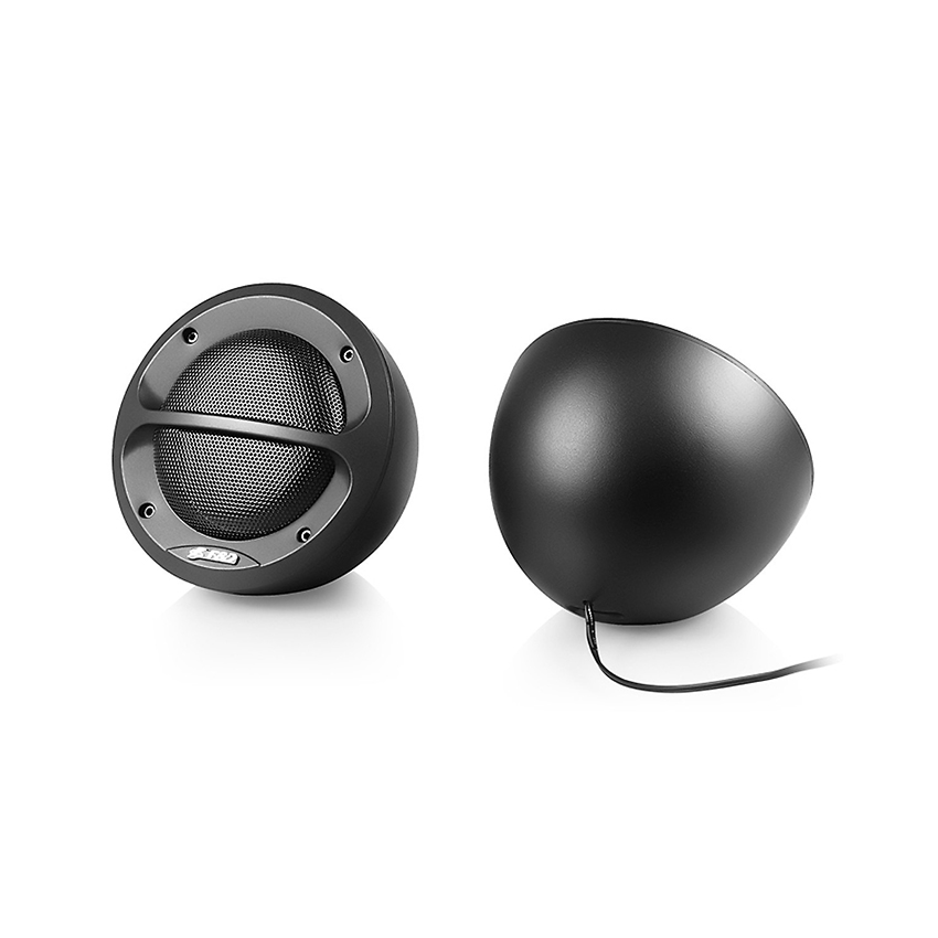 Màng loa được thiết kế hình tròn cách điệu giống bóng đèn tròn xe hơi, vỏ nhựa sang trọng và tinh tế, dễ dàng để trên bàn làm việc mà không chiếm nhiều diện tích.