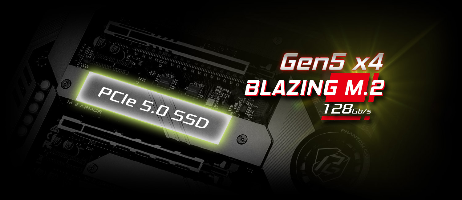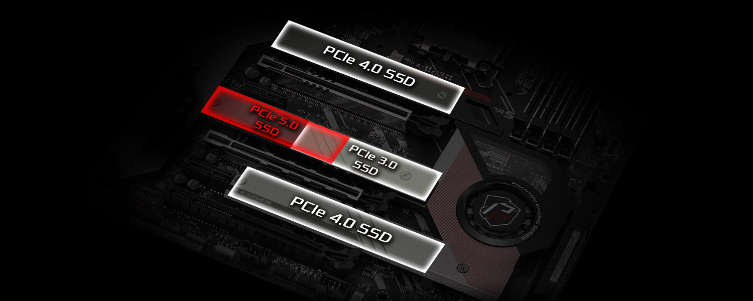 So với khe cắm PCIe kiểu DIP thông thường, khe cắm PCIe loại SMT cải thiện luồng tín hiệu và tối đa hóa độ ổn định ở tốc độ cao, một bước đột phá quan trọng để hỗ trợ đầy đủ tốc độ chiếu sáng của tiêu chuẩn PCIe 5.0 mới nhất. PCI Express 5.0 mới nhất có khả năng thực hiện băng thông ngoạn mục 128GBps, sẵn sàng giải phóng toàn bộ tiềm năng của card đồ họa cao cấp trong tương lai.