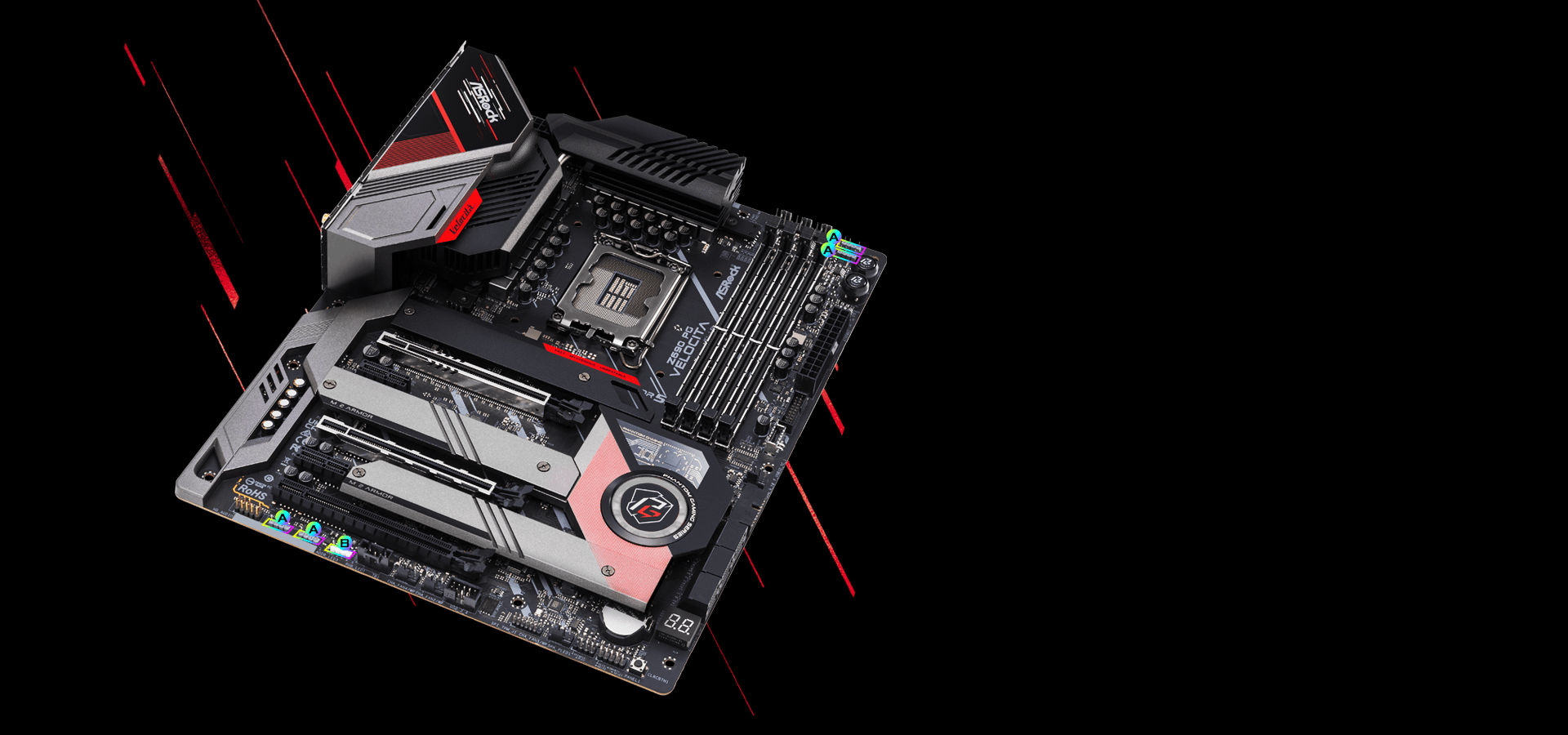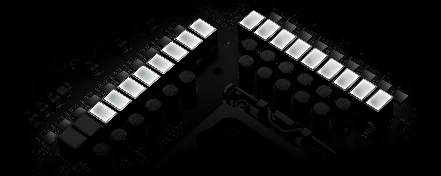 Ngoài hệ thống chiếu sáng RGB tích hợp, nó còn có các đầu cắm RGB tích hợp và đầu cắm RGB có thể định địa chỉ cho phép kết nối bo mạch chủ với các thiết bị LED tương thích như dải, quạt CPU, bộ làm mát, khung máy, v.v. Người dùng cũng có thể đồng bộ hóa các thiết bị LED RGB trên các phụ kiện được chứng nhận Polychrome RGB Sync để tạo hiệu ứng ánh sáng độc đáo của riêng mình.