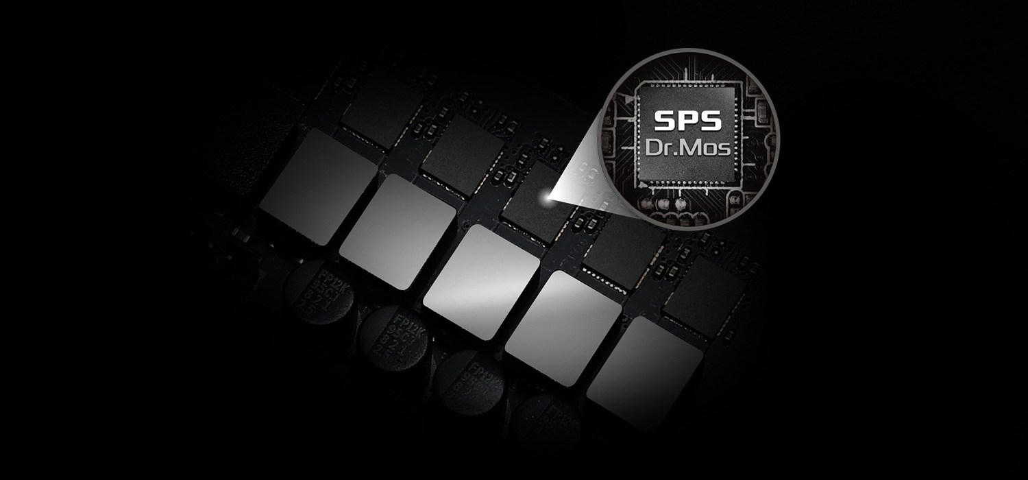 SPS (Smart Power Stage): Thiết kế Dr.MOS sử dụng công nghệ SPS (Smart Power Stage) mới nhất. Nó được tối ưu hóa để theo dõi dòng điện và nhiệt độ của từng pha, từ đó cung cấp năng lượng mượt mà và gọn gàng hơn cho CPU với hiệu năng và khả năng OC được nâng cao.