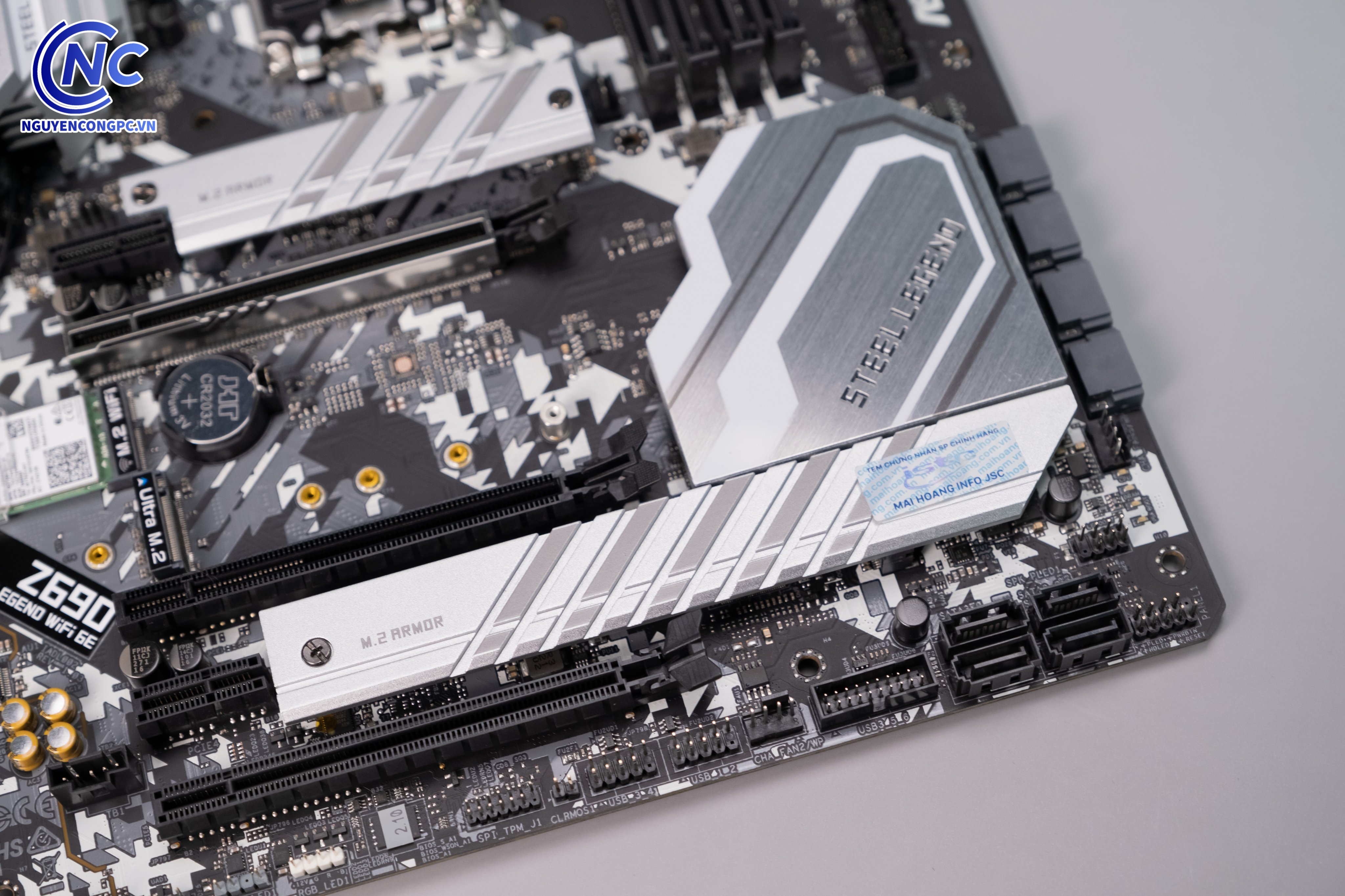 ASROCK Z690 STEEL LEGEND sở hữu thiết kế ATX với ngoại hình đậm chất Gaming với các khối heatsink cách điệu hình bánh răng đẹp mắt bao phủ ở các khu vực quan trọng trên bo mạch chủ.