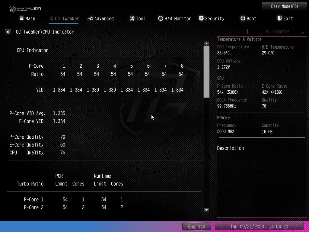 Điểm mới nhất của bo mạch chủ lần này là ASRock đã trang bị thêm tính năng CPU Indicator để giúp người dùng có thể theo dõi chất lượng điện áp của vi xử lý ở từng core, đồng thời cũng chỉ ra được vi xử lý nào ngon hay dở bằng cách chấm điểm ở mục CPU Quality. Đây là tính năng thường thấy ở bo mạch chủ ASUS và MSI mùa trước.