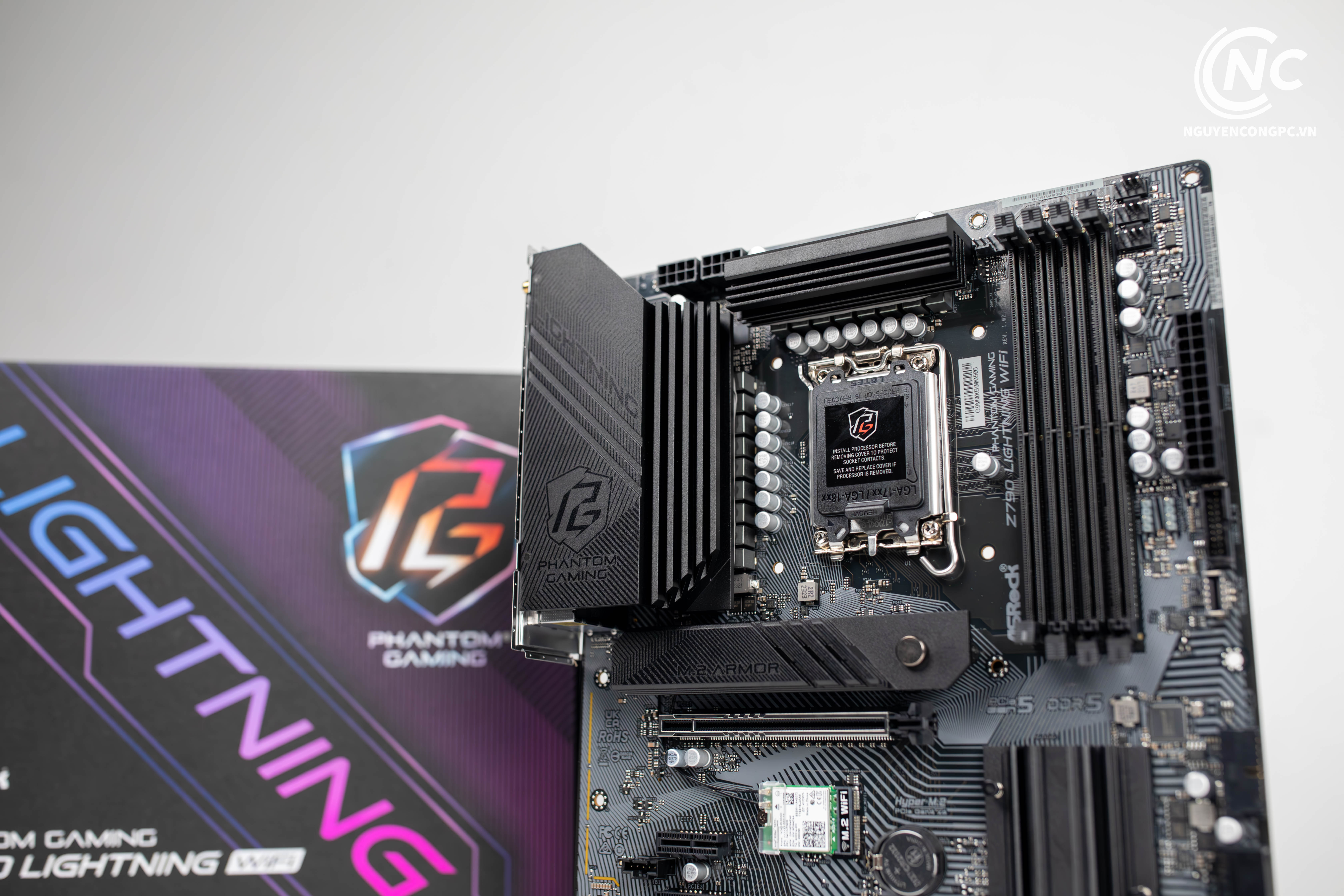 So với tiền nhiệm phiên bản Lighting DDR4 chỉ có thiết kế 14+1+1 phase, cho thấy ở Z790 PG Lightning WiFi đã được nâng cấp mạch VRM và layer PCB rất mạnh mẽ nhằm đáp ứng tốt các vi xử lý Intel Gen 14 ăn điện.