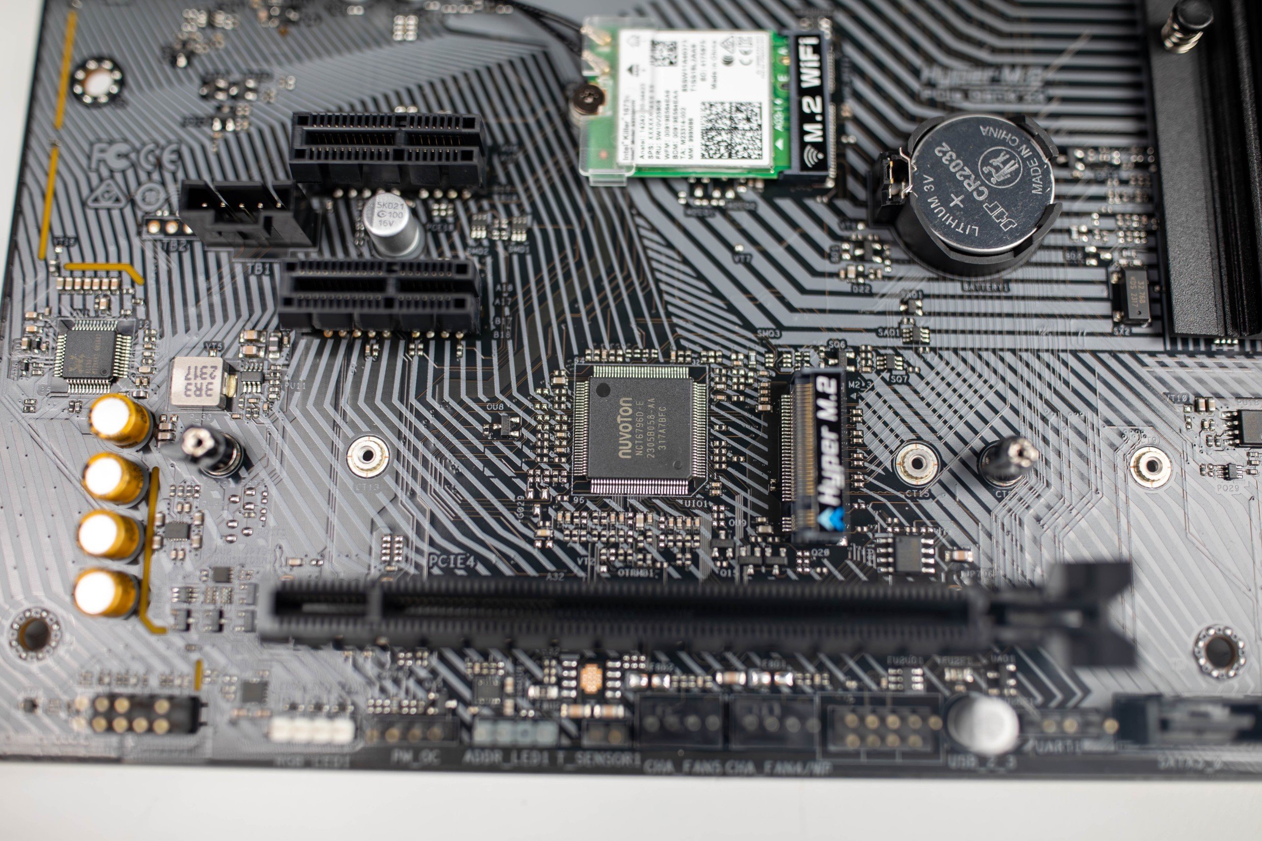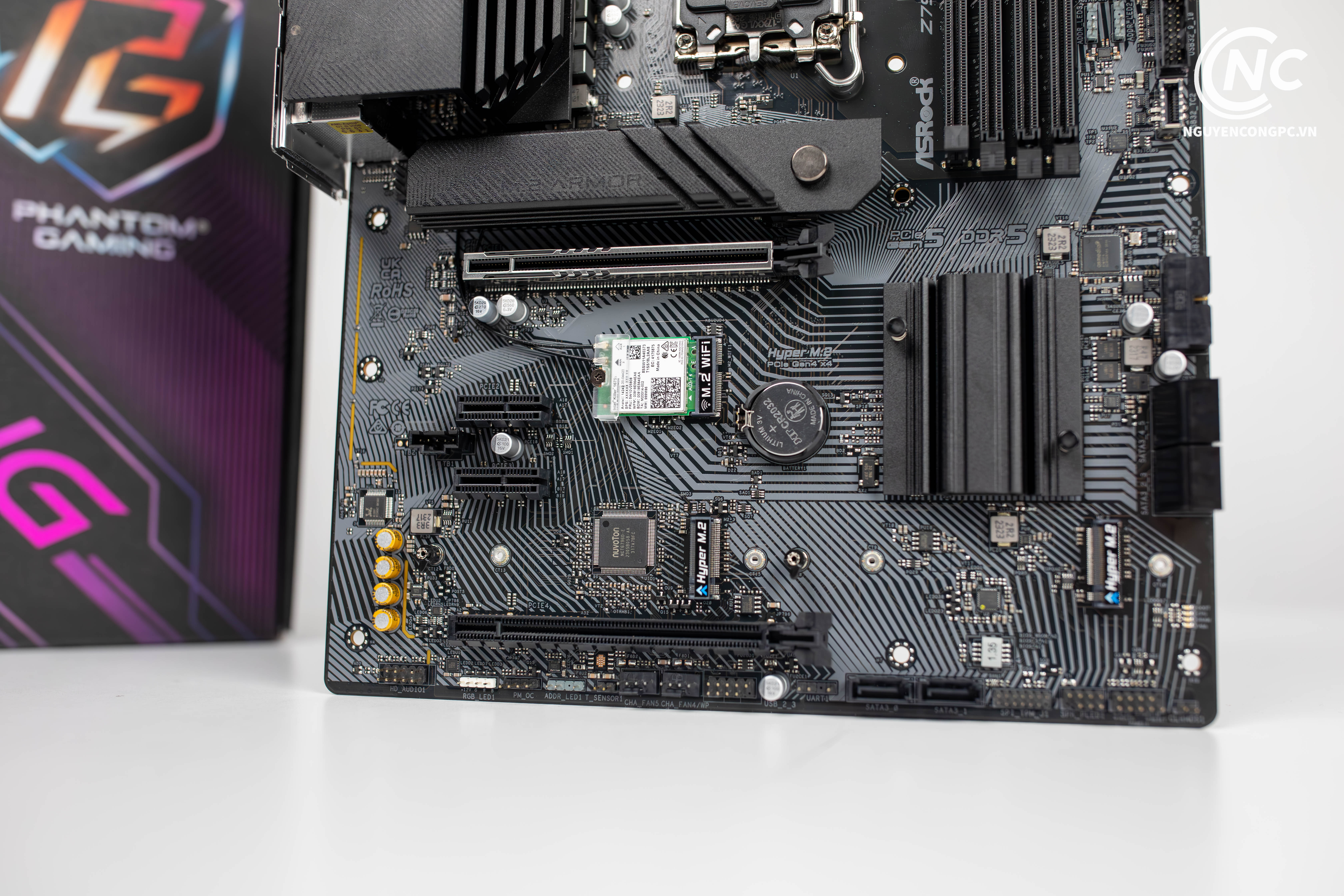 ASRock vẫn ưu ái cho sản phẩm một khe cắm M.2 (Type E) và hỗ trợ loại module WiFi WiFi/BT PCIe 2230 và Intel CNVio/CNVio2 (WiFi/BT tích hợp). Khả năng kết nối không dừng lại ở đó, bo mạch chủ vẫn trang bị một cổng chờ Thunderbolt 4 để kết nối với Thunderbolt 4 AIC.
