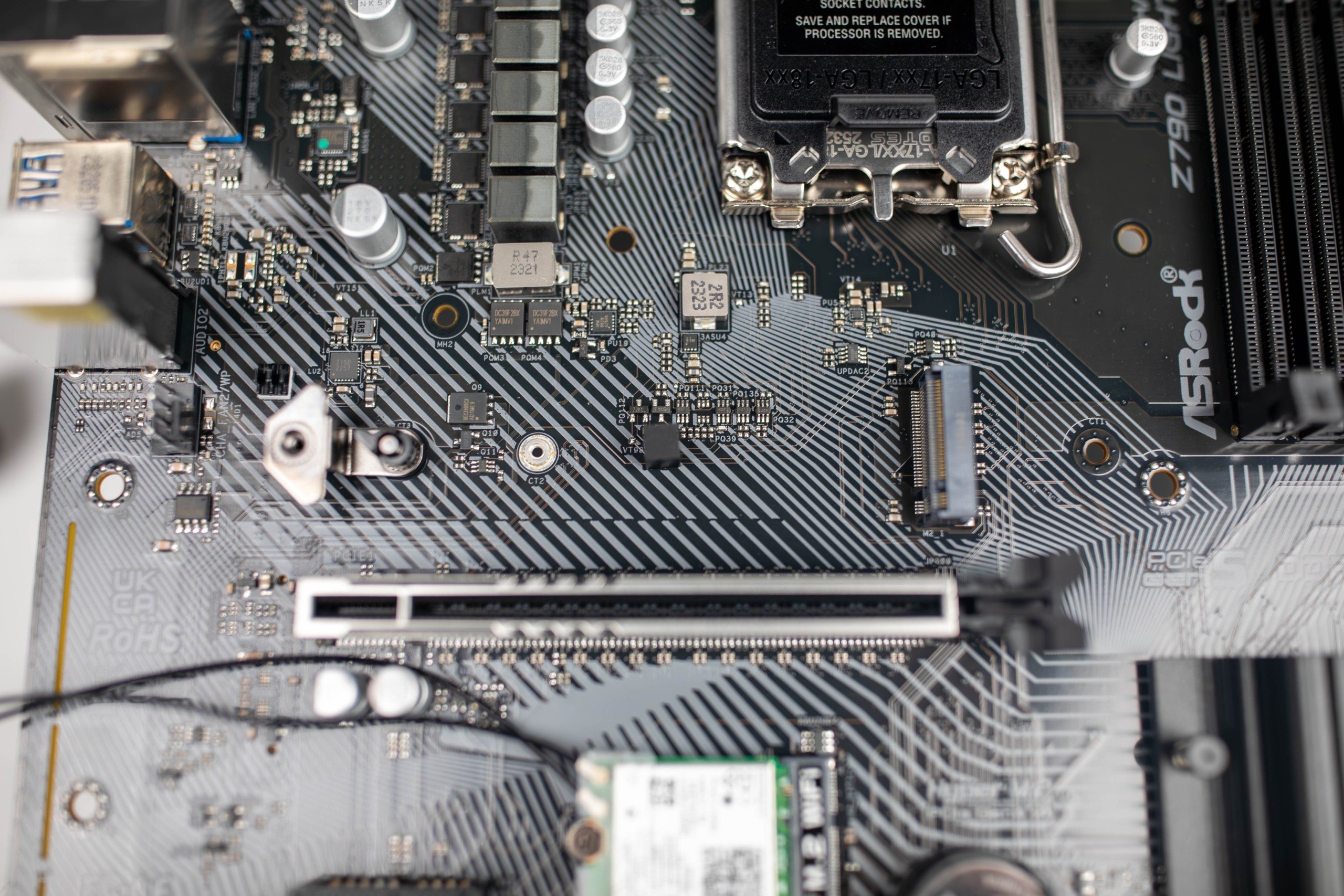 Bộ điều khiển PWM được sử dụng để điều khiển các thành phần trong mạch VRM là Richtek RT3628AE được sử dụng hầu hết ở các bo mạch chủ trung cấp Z690/Z790 của các hãng với chế độ 8+1, áp dụng tầng công suất song song. Với thành phần phase cho CPU VCORE và VCCGT, ASRock sử dụng Dr.MOS Vishay SiC634 (50A) cho mỗi phase. Nâng tổng số công suất cấp nguồn cho mạch VRM cho các thành phần CPU VCORE/VCCGT/ theo lý thuyết lần lượt là 800/60A.