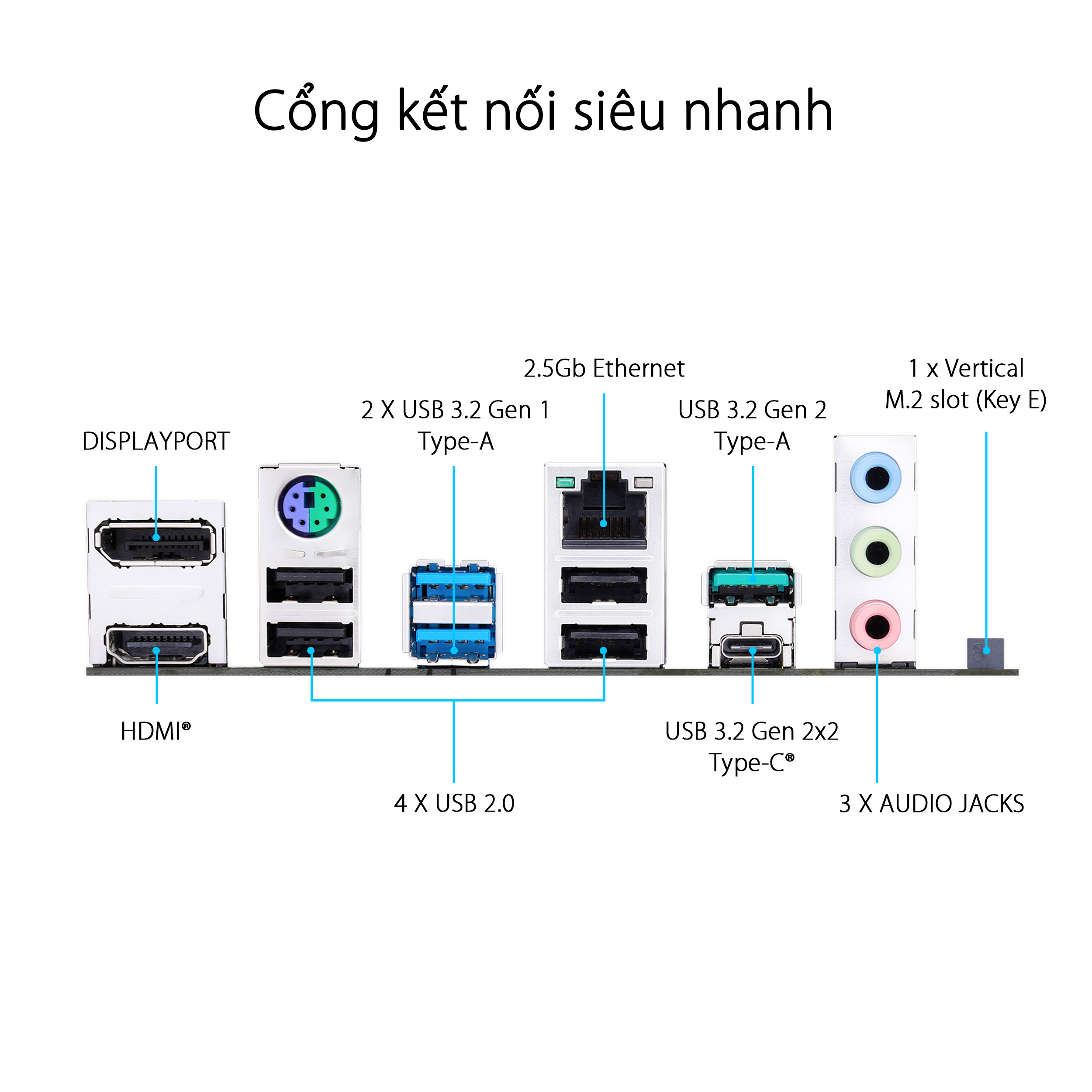Kết nối thế hệ tiếp theo: PCIe 5.0, Realtek 2.5Gb Ethernet, USB 3.2 Gen2x2 Type-C, bảng điều khiển phía trước USB 3.2 Gen 2 Type-C, hỗ trợ tiêu đề Thunderbolt (USB4), 3 PCIe 4.0 M.2