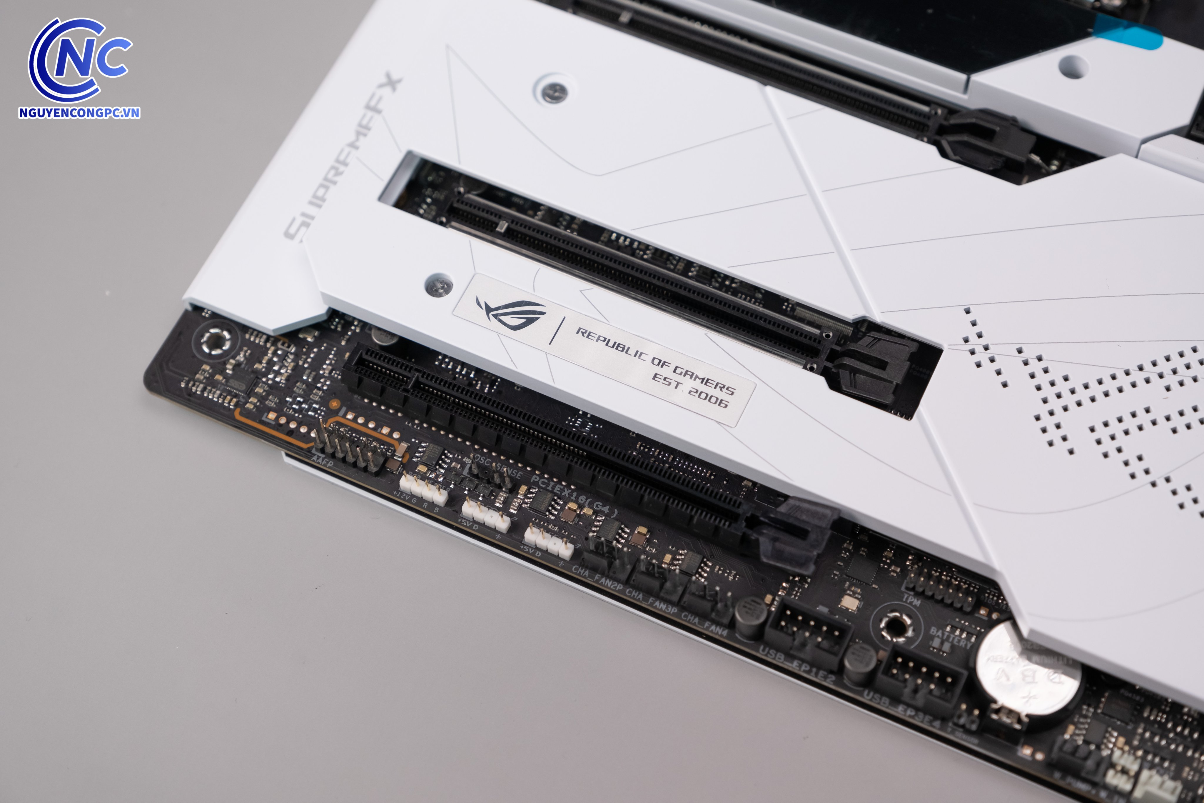 Khe RAM, khe PCI-E đều được bọc thép gia cường, tăng độ bền và sự cao cấp cho sản phẩm