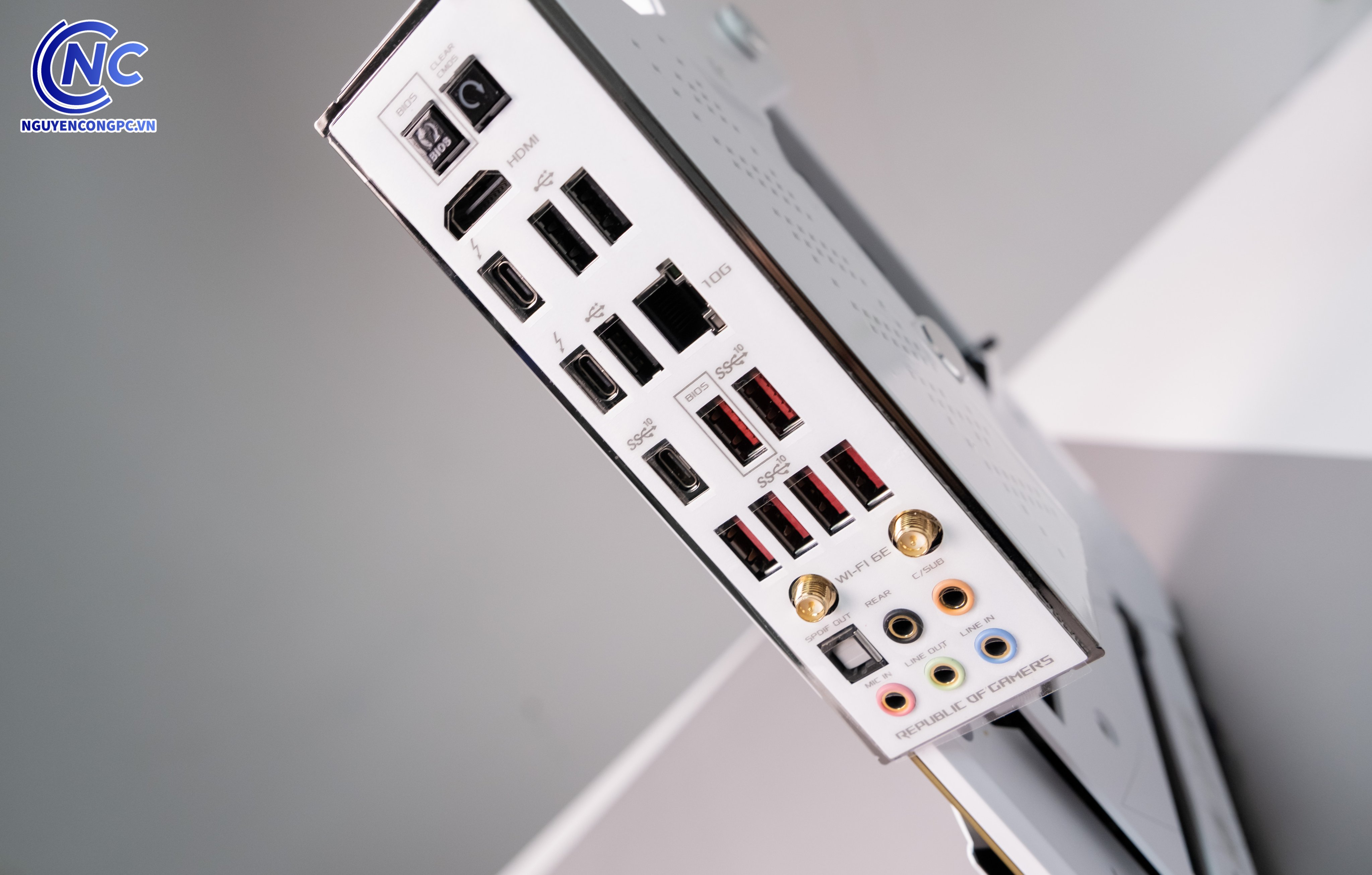 Ở mặt sau, Asus cũng trang bị thêm 1 lớp giáp bằng kim loại, bảo vệ toàn diện cho mainboard khỏi các tác động vật lý.