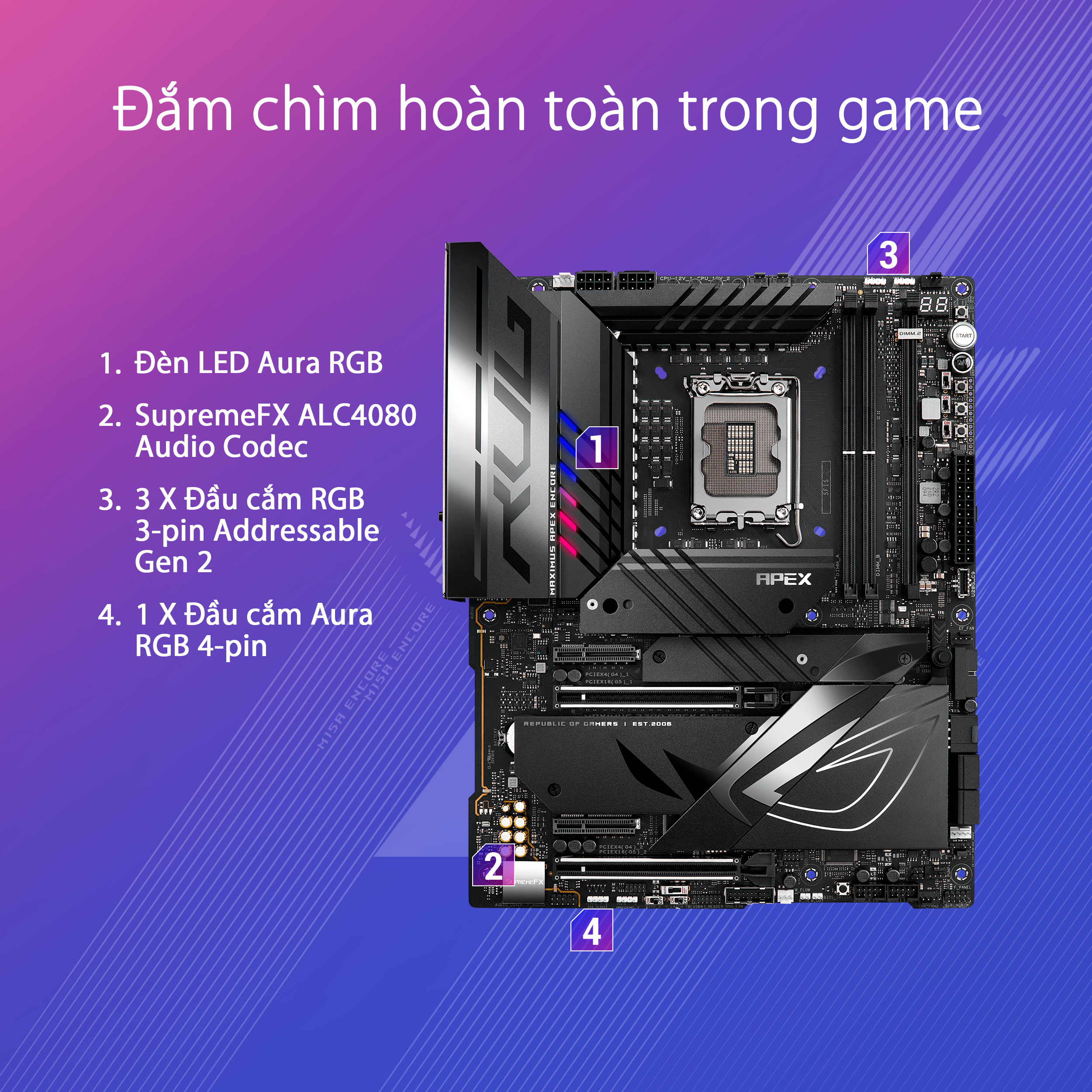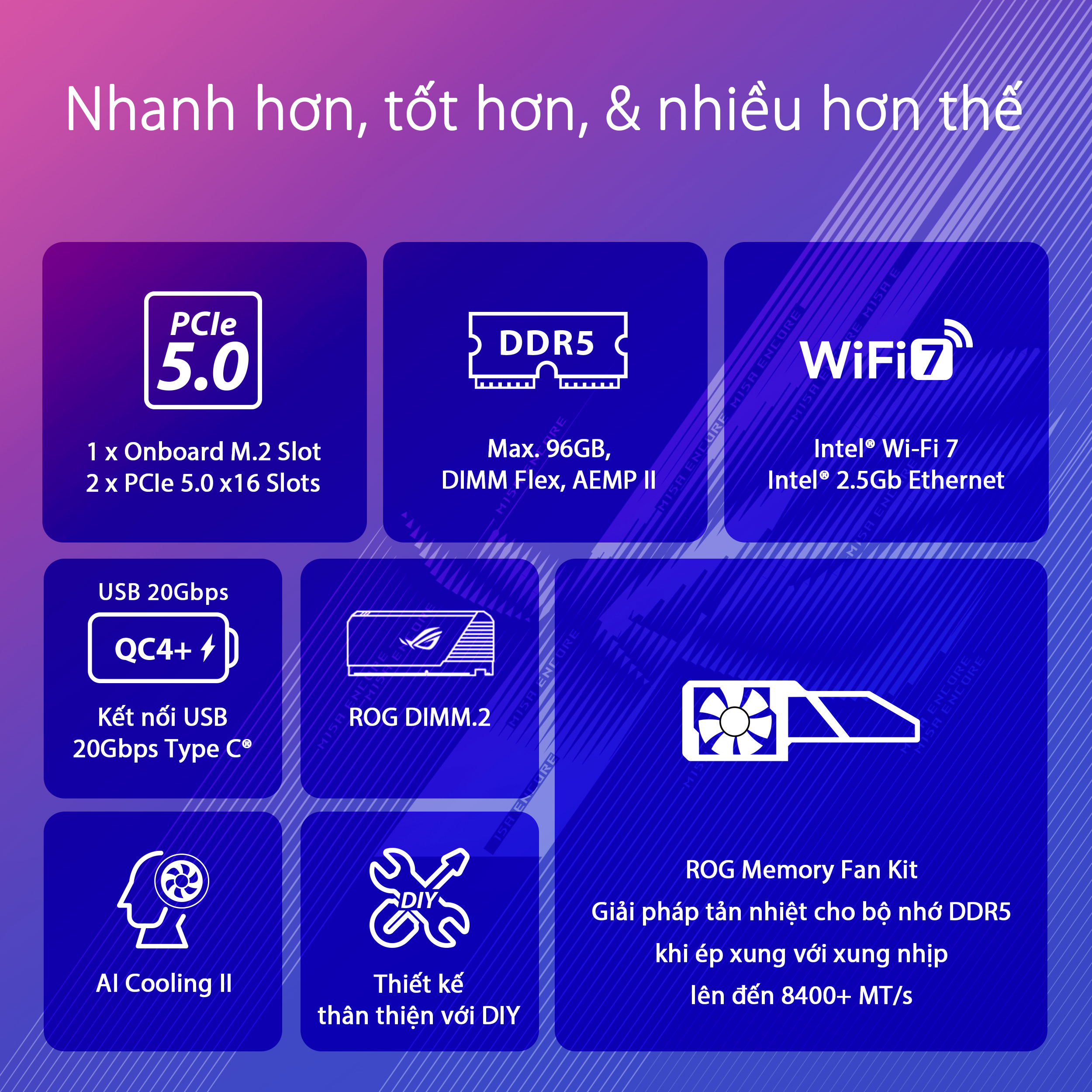 - 2 x khe cắm PCIe 5.0 x16 (hỗ trợ chế độ x16 hoặc x8 / x8) **