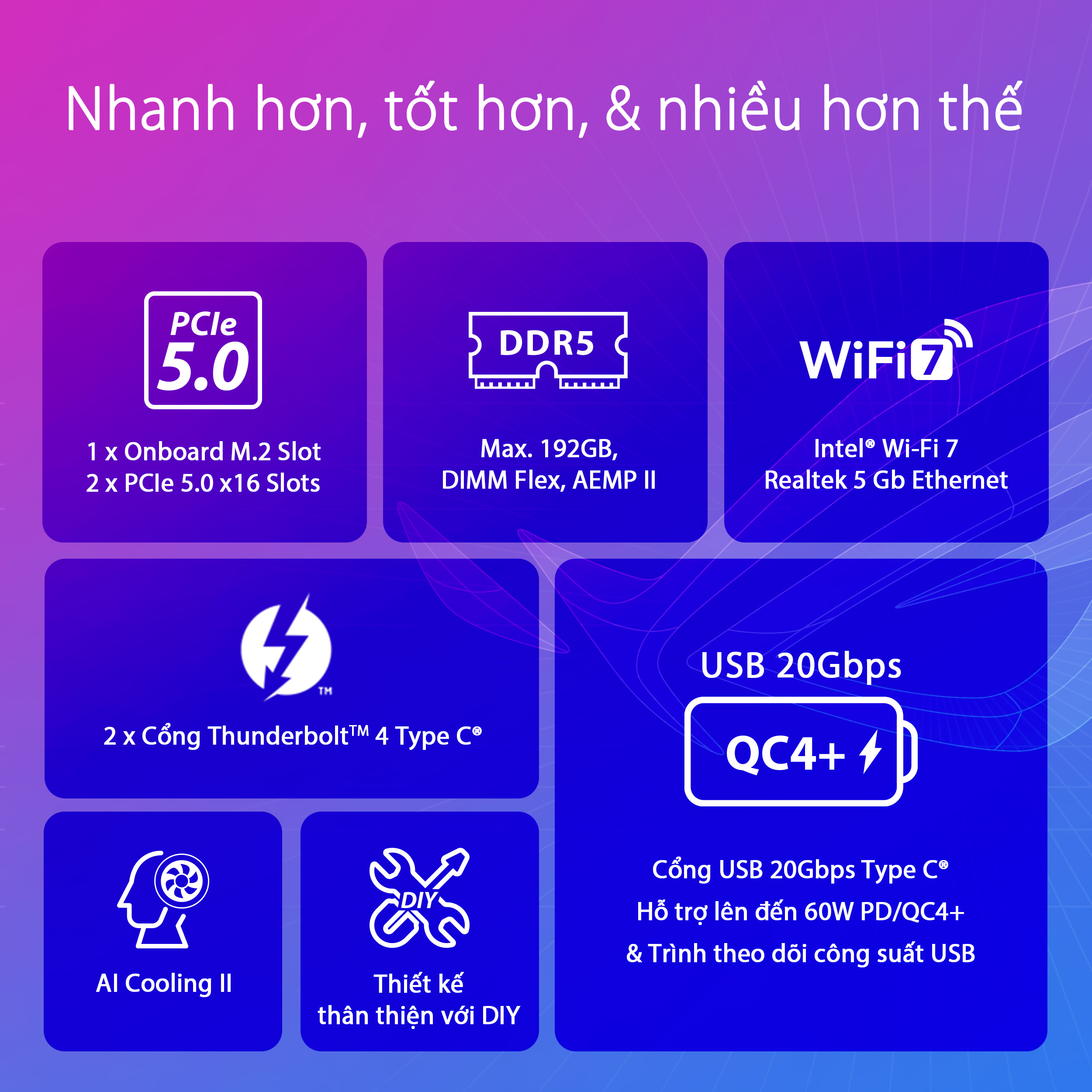 - Tối ưu hóa dễ dàng với ép xung AI