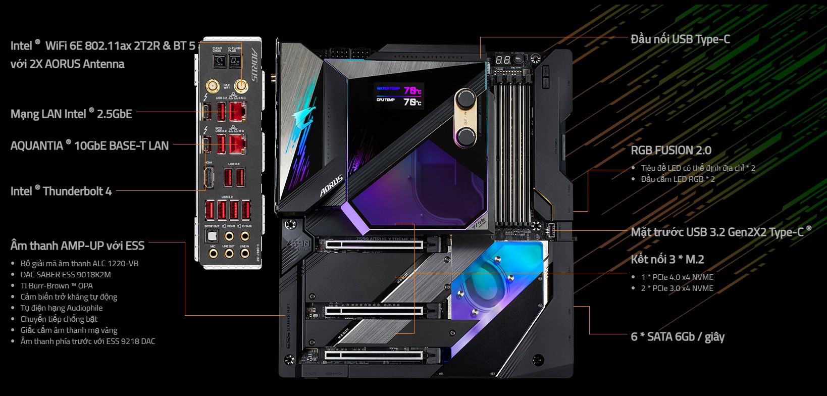 Để phát huy hết tiềm năng của CPU Intel thế hệ thứ 11 mới, bo mạch chủ yêu cầu sức mạnh CPU, bộ nhớ và thiết kế IO tốt nhất. Với các thành phần chất lượng tốt nhất và khả năng thiết kế R&D của GIGABYTE, Z590 AORUS XTREME WATERFORCE là một con quái vật thực sự trong số các bo mạch chủ.