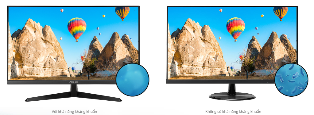 Các viềng và phím nóng trên VY279HE được xử lý bằng bạc ion kháng khuẩn1. Bằng cách ngăn chặn sự bám dính của vi khuẩn2 lên đến 99,9%, giúp giữ cho các khu vực chính của màn hình luôn sạch sẽ và vệ sinh, làm giảm sự lây lan của vi khuẩn có hại.