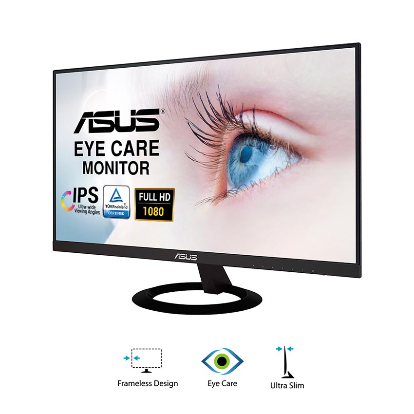 Màn hình ASUS VZ249HE có một thiết kế tiết kiệm diện tích với kiểu dáng siêu mỏng chỉ dày 7mm ở điểm mỏng nhất. Thiết kế không khung viền khiến sản phẩm này rất thích hợp cho các thiết lập đa màn hình gần như liền mạch, cho bạn cảm giác đắm chìm sâu hơn nữa. Một tấm nền IPS hiệu năng cao tiên tiến cho bạn tỷ lệ tương phản 80.000.000:1 cực ấn tượng và góc nhìn rộng 178°. Thêm vào đó, công nghệ ASUS Eye Care đảm bảo một trải nghiệm xem thoải mái.