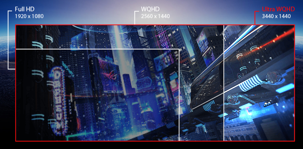 Màn hình chơi game ROG Swift PG349Q trang bị tấm nền 34 inch QHD (3440 x 1440) siêu rộng với mật độ điểm ảnh lên tới 109 điểm ảnh mỗi inch (PPI) vì vậy bạn sẽ được trải nghiệm chi tiết lớn hơn khi chơi game hoặc xem phim. Tấm nền với tỷ số màn hình 21:9 siêu rộng của màn hình mang lại cho không gian màn hình rộng hơn 35% so với màn hình WQHD, vì vậy sẽ có thêm không gian cho nhiều cửa sổ ứng dụng khác. ROG Swift PG349Q mang lại cho bạn hình ảnh với chi tiết rõ nét để có thể thấy rõ bản đồ địa hình trong game tới mức chi tiết ấn tượng.