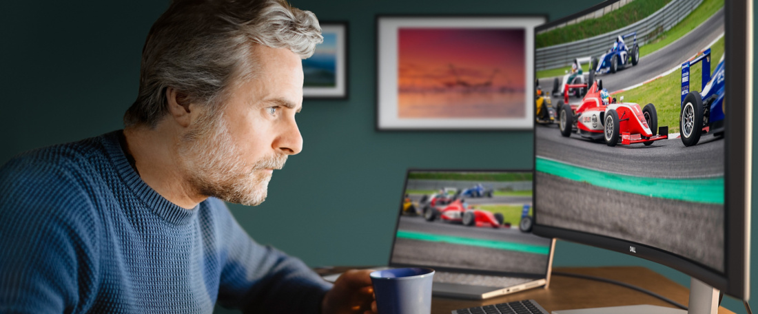 Màn Hình Cong Dell S3422DW có thiết kế cong 1800R viền siêu mỏng ba cạnh với kích thước cực rộng 34 inch, độ phân giải WQHD (3440 x 1440) cho phép bạn tận hưởng trải nghiệm xem đắm chìm với độ rõ nét và chi tiết tuyệt vời.