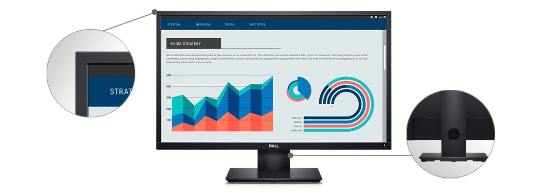 Tối đa hóa không gian của bạn: Cấu hình mỏng, viền hẹp và khả năng quản lý cáp được cải tiến tạo ra một diện tích nhỏ trong tầm nhìn rộng, tạo nên một bàn làm việc sạch sẽ, gọn gàng.