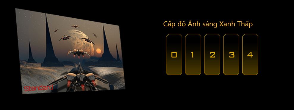 Công nghệ ASUS Ultra-Low Blue Light giảm ánh sáng xanh có hại phát ra bởi màn hình. Hiện có bốn thiết lập bộ lọc khác nhau để điều khiển lượng giảm ánh sáng xanh.