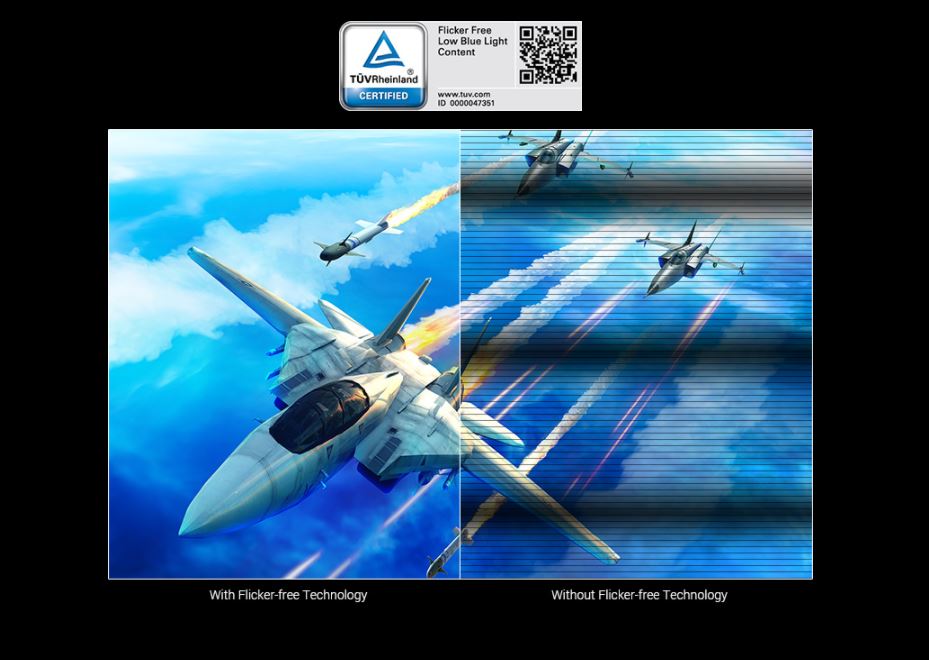 Công nghệ Flicker-Free giảm nhấp nháy để giảm thiểu mỏi mắt giúp tăng cường sự thoải mái khi bạn đắm chìm trong các phiên game đường trường.