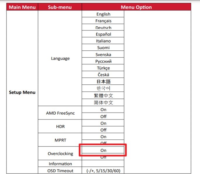 | Tín hiệu đầu vào | Tần số Ngang: HDMI (v1.4): 30 ~ 166KHz, DisplayPort (v1.4): 30 ~ 193KHz Tần số Dọc: HDMI (v1.4): 48 ~ 180Hz, DisplayPort (v1.4): 48 ~ 180Hz |