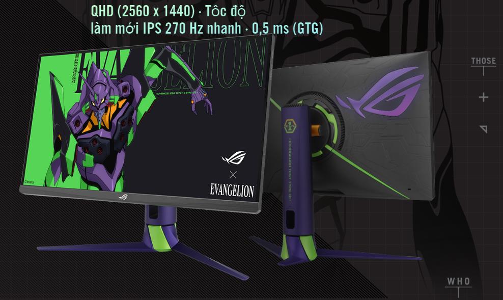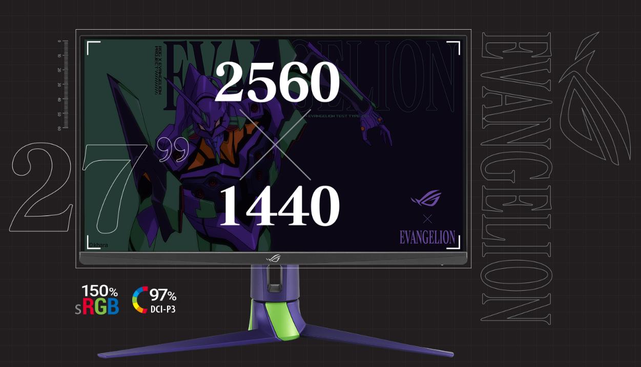 Republic of Gamers sẽ ra mắt thiết bị mới cho dự án EVANGELION. ROG Strix XG27AQM EVA Edition được bao phủ bởi tông màu xanh lá cây và tím của EVA-01. Với tốc độ làm mới được ép xung là 270 Hz và thời gian phản hồi 0,5ms (GTG) nhanh chóng, người dùng sẽ trải nghiệm một chế độ xem cực kỳ mượt mà. Màn hình 27 inch cũng bao phủ 97% không gian màu DCI-P3, thể hiện đầy đủ các phương tiện có gam màu rộng.