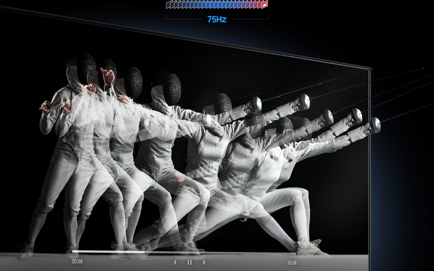 Tốc độ làm mới đạt 75Hz giúp hiển thị rõ nét mọi chuyển động. Không còn tình trạng giựt hình hay hiệu ứng bóng mờ, giờ đây bạn thỏa thích thưởng thức từng khung cảnh của bộ phim hay video yêu thích, tận hưởng các trận game kịch tính một cách mượt mà và sống động đến khó tin.