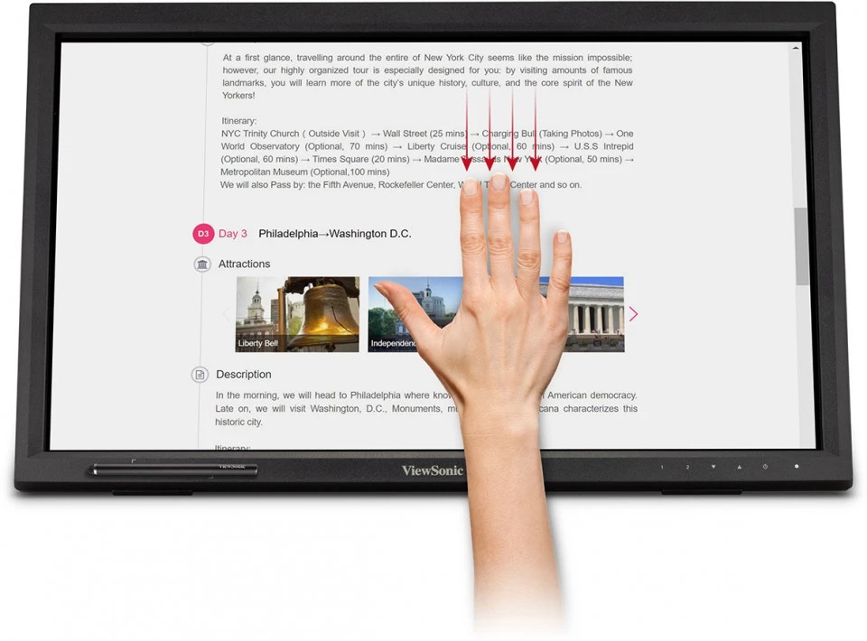 Màn hình cảm ứng điện dung có thể nhận biết lên tới 10 điểm tiếp xúc so với màn hình cảm ứng quang học, TD2223 mang lại trải nghiệm cảm ứng đa điểm trực quan với mỗi lần chạm, nhúm và vuốt.