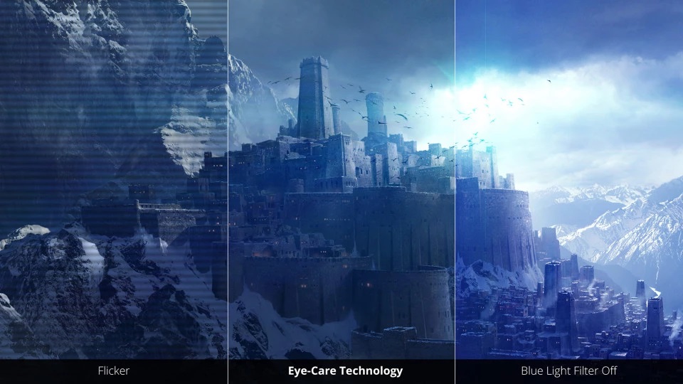 Công nghệ bảo vệ mắt gồm BỘ LỌC ÁNH SÁNG XANH và CHỐNG NHẤP NHÁY sẽ bảo vệ đôi mắt của bạn khỏi nhức mỏi khi làm việc lâu trước màn hình máy tính.